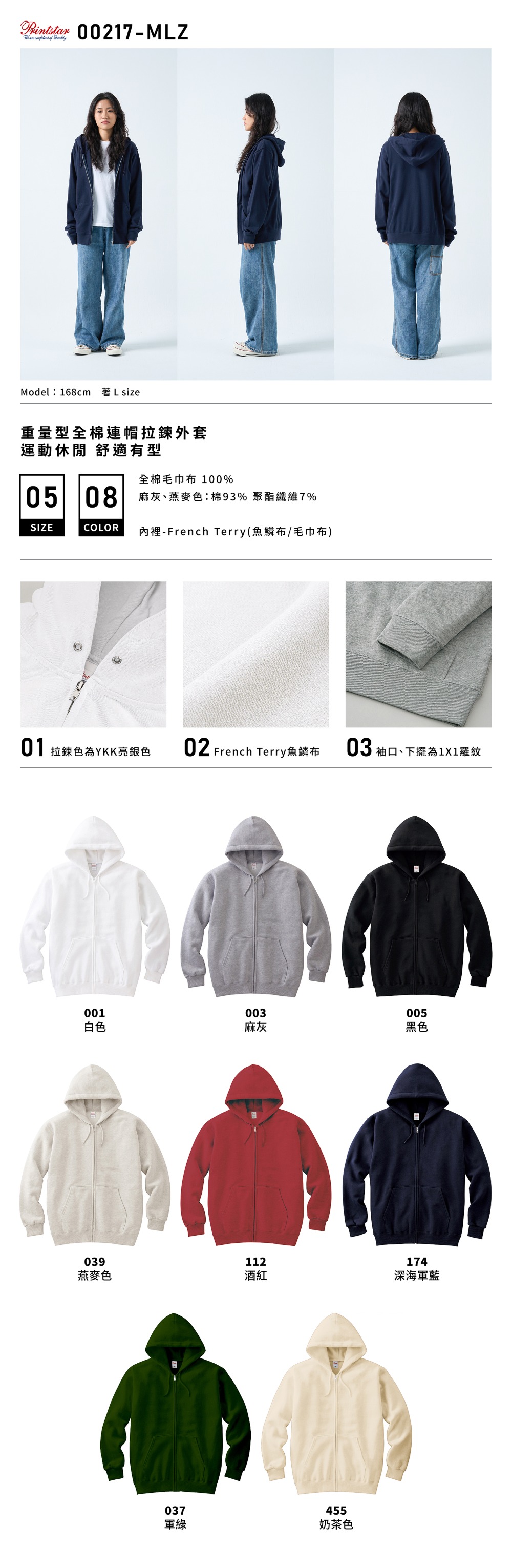 E002 - Printstar 8.4oz. 全棉連帽外套