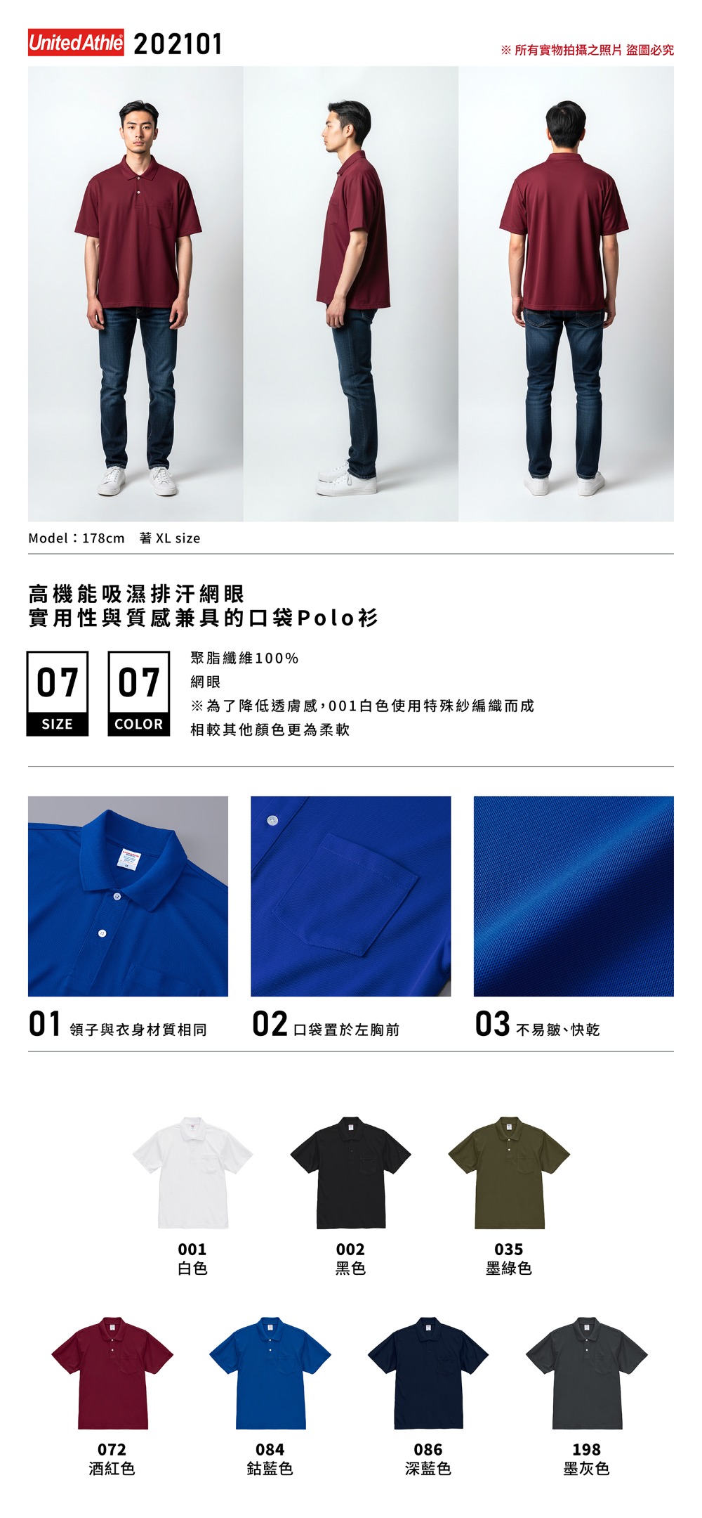 B017 - UA 4.7oz. 高機能吸濕排汗網眼口袋POLO衫