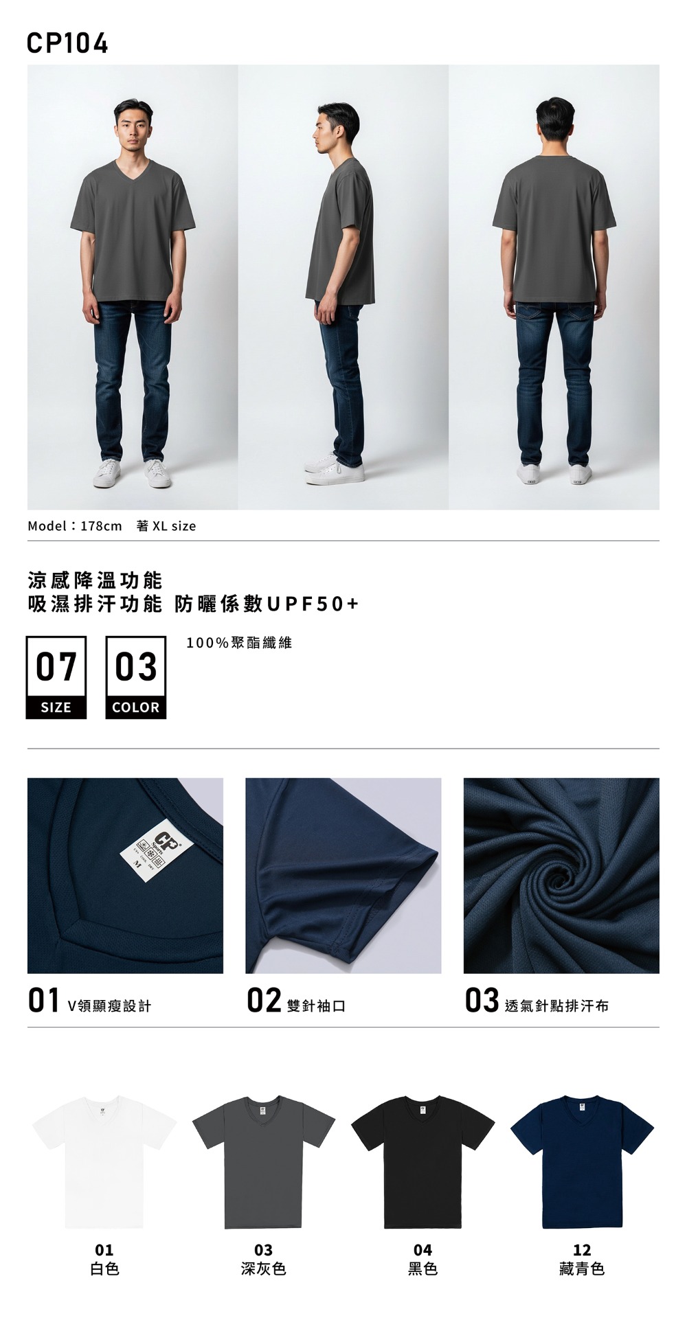 A037 - CP 4.5oz.涼感吸濕排汗V領T恤