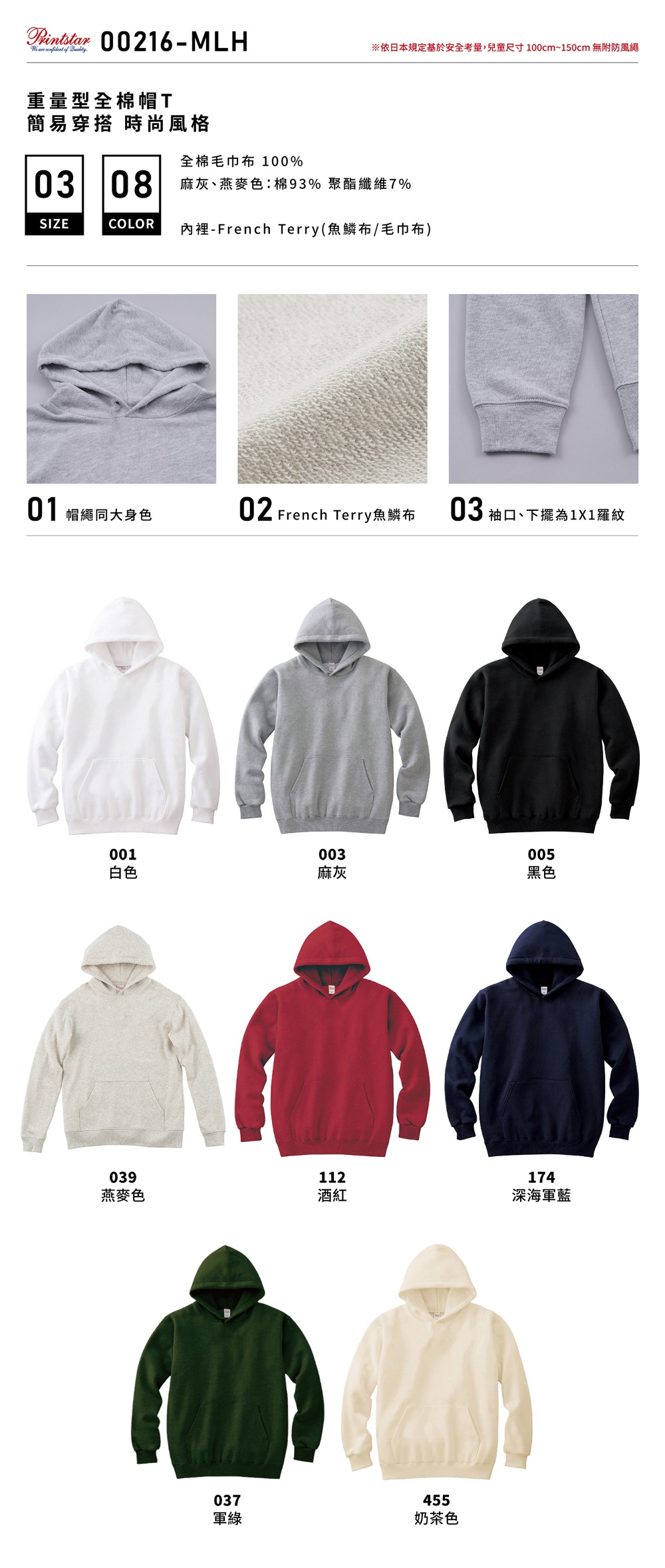 K009 - Printstar 8.4oz. 兒童全棉連帽T恤